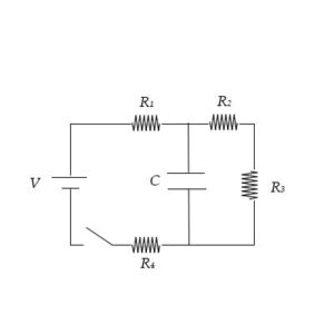 The circuit in question consists of four resistors (R1, R2, R3, R4) connected in series with a capacitor (C). The resistors are arranged in such a way that the current flows through them in sequence. The capacitor is placed in parallel with the last resistor (R4).