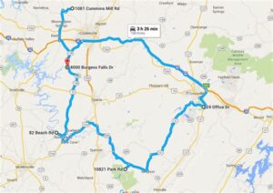 - Start in Birmingham, AL, heading northeast towards Huntsville.