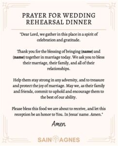 As the blissful day of marriage draws near, the rehearsal dinner stands as a cherished gathering that sets the stage for the main event. Amid the merriments and heartfelt speeches, a blessing for the rehearsal dinner adds a touch of sacredness and spiritual guidance to the celebration. This special prayer serves to invoke blessings upon the couple, their families, and the journey they are about to embark on.