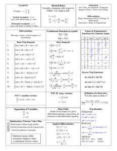 Calculus AB is a foundational course in mathematics that introduces students to the concepts of limits, derivatives, and integrals. Mastering these concepts is essential for success in higher-level math and science courses, as well as in many real-world applications. This comprehensive cheat sheet provides a concise and accessible overview of the key formulas, theorems, and techniques from Calculus AB, empowering you to conquer the challenges of this crucial subject.