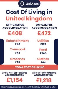 Aside from tuition and Living Expenses for a place to stay.">Accommodation Costs, international students also need to budget for living expenses such as food, transportation, books, and entertainment. The cost of living in Cambridge is relatively high, with international students typically spending around £12,000-£15,000 per year on living expenses.