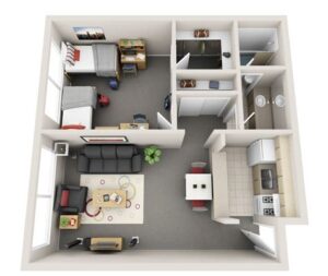 Studio: Perfect for single professionals or students, the studio floor plan provides a compact and efficient living space.