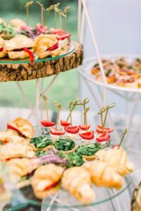 | Caprese skewers | Mozzarella balls, tomatoes, basil |