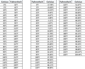 Temperature Conversion Table