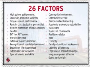 A number of factors can determine the class of admission for a particular college or university, including: