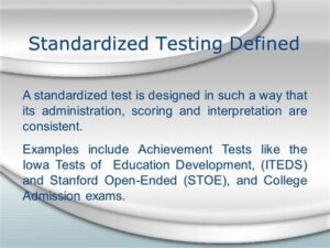 A standardized test is an exam that is administered and scored in a consistent manner across a large group of test takers. This type of test is typically used to measure a person’s knowledge or skills in a particular subject area. Standardized tests are often used for educational purposes, such as determining college admissions or placement in certain courses. They can also be used for job placement or to assess the effectiveness of educational programs.