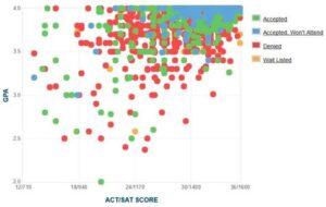 The average SAT score for admitted students in the 2022-2023 admissions cycle was 1560. This score is based on the sum of the Evidence-Based Reading and Writing (EBRW) score and the Math score.
