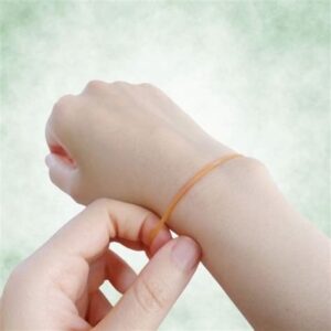 While there is no scientific evidence to support this claim, some people find that wearing an elastic band on their wrist can provide a tactile reminder to focus on the present moment and reduce distractions.
