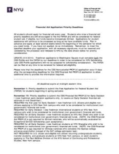 - What is the FAFSA deadline for NYU? The FAFSA deadline for NYU is January 15th.