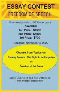 The Free Speech Essay Contest invites students to submit essays that explore the following topics: