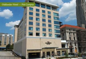 The Oaklander Hotel is adjacent to the U Pitt campus, offering the shortest commute time. Other hotels are located within a few blocks or a short drive from campus.