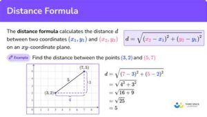 The distance formula is a mathematical equation that calculates the distance between two points in a coordinate plane. The formula is: