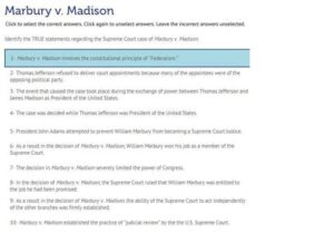 - Statement: Marbury v. Madison was decided unanimously by the Supreme Court.