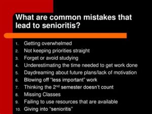 When attempting to tackle senioritis, it’s important to avoid common pitfalls. These include: