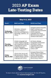 • Accommodation of COVID-19 Impacts: The late testing dates accommodate students who may have experienced learning disruptions due to the pandemic, ensuring that they have an opportunity to earn college credit.