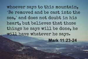 “Truly I tell you, if you say to this mountain, ‘Be lifted up and thrown into the sea,’ and do not doubt in your heart, but believe that what you say will happen, it will be done for you. Therefore, I tell you, whatever you ask for in prayer, believe that you have received it, and it will be yours.” (Mark 11:23-24, NIV)