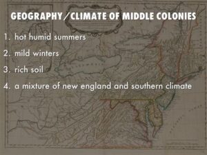 The Middle Colonies, comprising New York, New Jersey, Pennsylvania, and Delaware, were a hub of colonial settlement during the 18th century. At the heart of their prosperity lay a temperate climate that fostered agriculture, trade, and population growth. This article delves into the specific characteristics of the Middle Colonies climate and its profound impact on the region’s history.