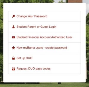 A: Click the “Forgot Password” link on the My Bama login page and follow the instructions to recover your account.
