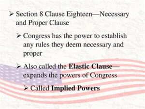 The Necessary and Proper Clause, also known as the Elastic Clause, is a crucial provision within Article I, Section 8 of the United States Constitution. It empowers the federal government to enact laws that are “necessary and proper” for carrying out its enumerated powers. This clause has played a pivotal role in shaping the federal government’s regulatory authority and the balance of power between the federal and state governments.