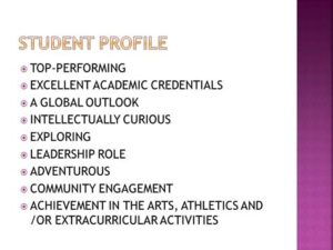 | 4.0 | 1600 SAT | President of multiple clubs, community service | Excellent | Strong | Accepted |