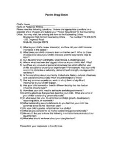 Parent Brag Sheet Sample