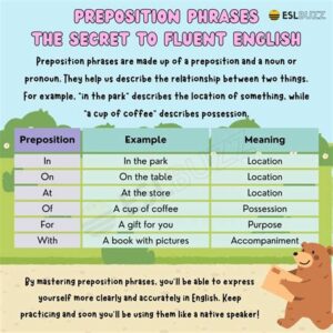 - Lack of clear examples to illustrate the usage of each preposition.