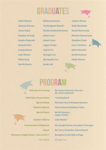 – Invite special guests, family members, or friends to give speeches honoring the graduate.