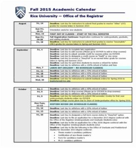 rice academic schedule