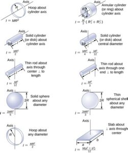 | Hollow cylinder (rotating about central axis) | m * (R^2 – r^2) / 2 |