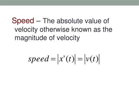 The absolute value of velocity is equal to the speed of the object because it is the magnitude of the velocity vector. The magnitude of a vector is its length, and it is always a positive number. Therefore, the absolute value of velocity is always a positive number, regardless of the direction of the velocity vector.