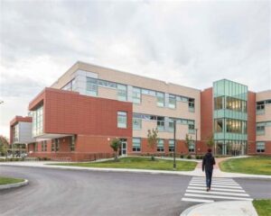 Designed by the renowned architectural firm Perkins+Will, the residence hall seamlessly integrates form and function. Its modern aesthetic is characterized by sleek glass facades, geometric lines, and an abundance of natural light. The building’s innovative design prioritizes energy efficiency, with LED lighting, solar panels, and geothermal heating and cooling systems reducing its environmental footprint.