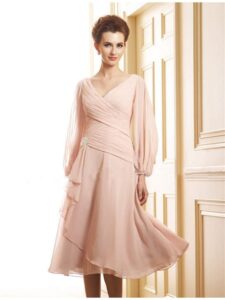 2. Cap Sleeves or Long Sleeves: Opt for a dress with cap sleeves or long sleeves to add a touch of modesty and sophistication. This can be especially flattering for mothers of the bride who want to cover their arms.