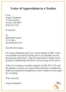 Dear [Teacher’s Name],
