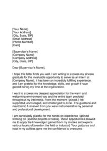 • “I am writing to express my sincere gratitude for the invaluable experience I gained during my internship under your supervision. Your mentorship has been instrumental in my professional growth.”