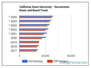 If you reside off-campus, you will need to budget for meal expenses. The estimated monthly cost of groceries in Sacramento is around $300. Additionally, you can purchase meals on campus at various dining locations. A typical meal at a campus dining hall costs around $10.