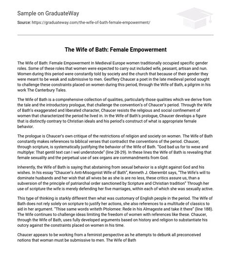 While the Wife of Bath’s ideas were revolutionary for her era, they resonate with contemporary audiences who continue to grapple with issues of gender inequality and social injustice. Her embodiment of female agency, her rejection of societal norms, and her unwavering commitment to personal freedom serve as a timeless inspiration for those who seek to challenge oppressive systems and create a more just and equitable world.