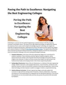 The engineering colleges in Texas are renowned for their academic excellence, research prowess, and dedication to fostering diversity and innovation. These institutions are shaping the future of engineering education and research, preparing students to tackle the challenges and seize the opportunities of the 21st century. By choosing an engineering college in Texas, you are investing in a transformative educational experience that will empower you to make a meaningful contribution to the field of engineering and beyond.