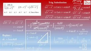- Make the substitution: Replace the relevant variable in the integrand with its trigonometric counterpart.