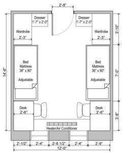 typical dorm room dimensions