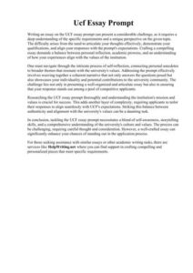 UCF essay prompts provide applicants with an opportunity to showcase their writing abilities and demonstrate their fit for the university. By carefully considering the prompts, developing strong ideas, and following effective writing techniques, prospective students can craft exceptional essays that will enhance their applications and increase their chances of admission.