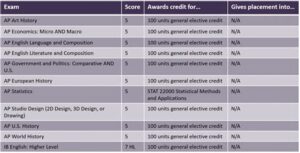 The following table outlines the University of Chicago’s AP credit equivalencies:
