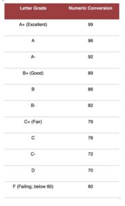 Letter Grade Percentage GPA Equivalent