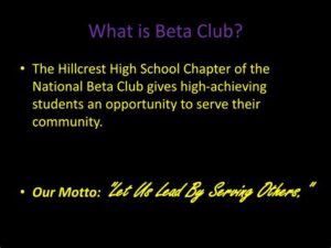 Beta Club is a national organization for high school students who excel academically and show leadership qualities. The club’s mission is to promote academic achievement, character development, and service to others. Beta Club membership offers a number of benefits, including academic enrichment, character development, leadership development, community service, and college admissions.