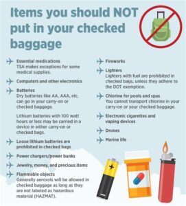 Q: What can’t I pack in my checked luggage?