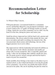 Begin the letter with a formal salutation, such as “Dear [Scholarship Committee Chair’s Name]” or “To Whom It May Concern.”